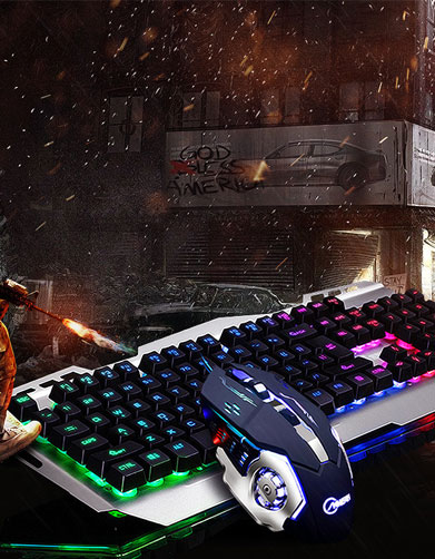AOC真機械手感鍵盤鼠標套裝有線游戲背光發光臺式電腦外設筆記本辦公